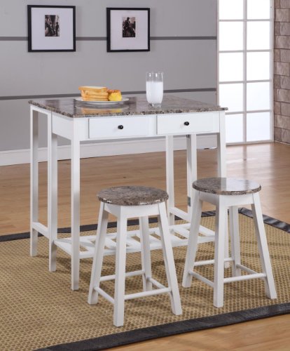 OnSale 3 Pc. White Finish Wood Drop Down Table & 2 Stools